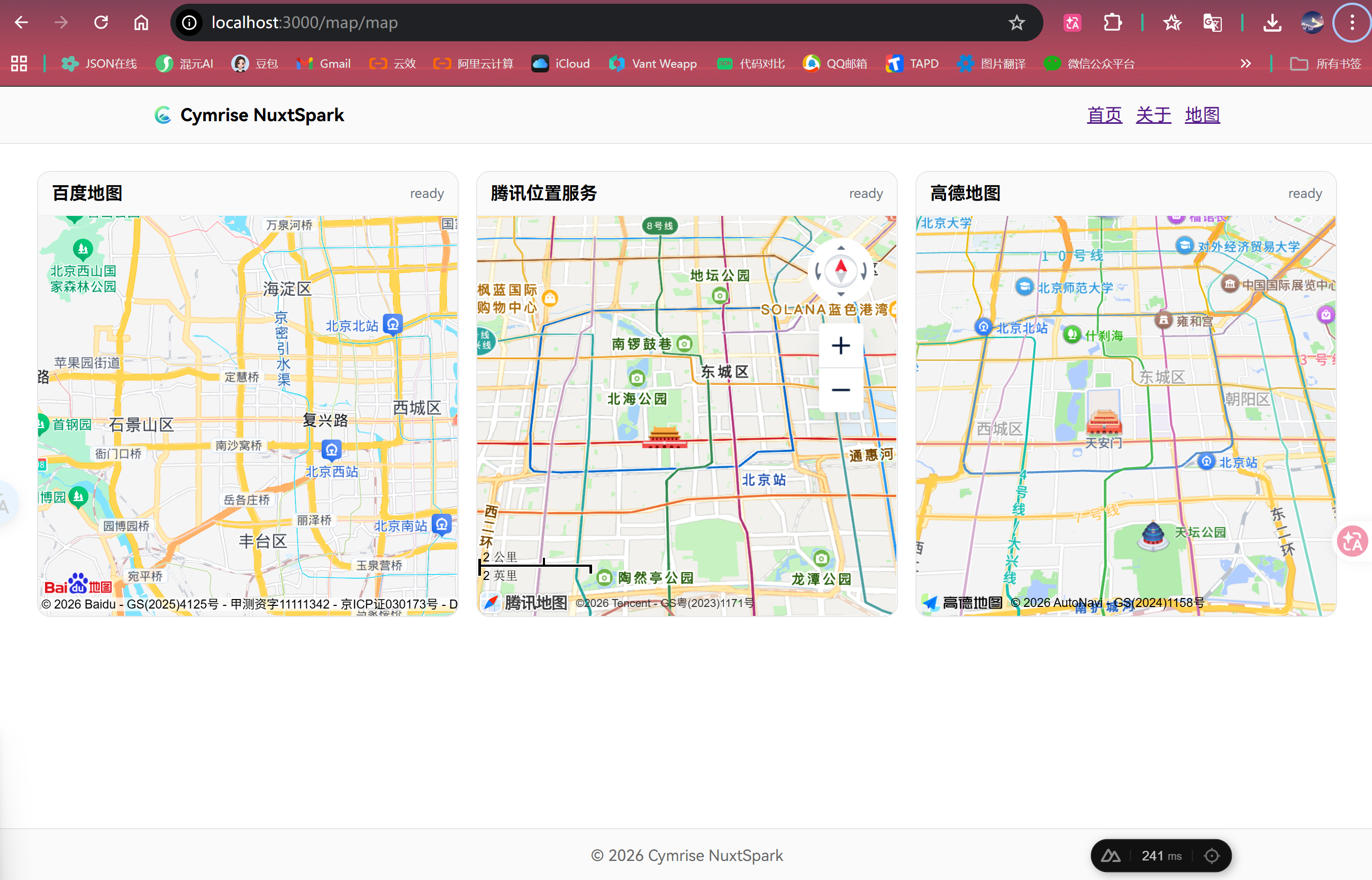使用NuxtSpark测试御三家地图服务